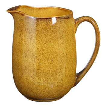 Vul deze kan met heerlijke drank of je favoriete limonade en serveer het om zo een een feestelijke sfeer tecreëren. Maar hij is ook ideaal voor op een hete zomerse dag gevuld met ijs en water De kan heeft een prachtige vormgeving, is gemaakt van steengoed, heeft een opvallende okergele kleur en een afmeting H16 x ø10 cm. Dankzij het handvat is hij dan ook gemakkelijk vast te pakken en te verplaatsen. Ook als decoratiestuk is hij goed te gebruiken. De kan is vaatwasserbestendig.