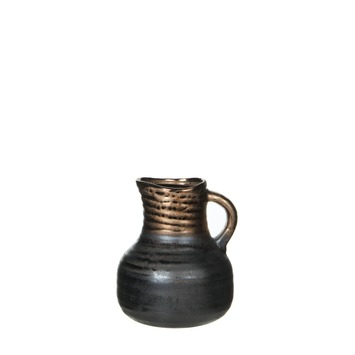 Kan Micha is rustiek en robuust. In combinatie met bloemen of takken geeft dit een mooi contrast. Deze kan met handvat is gemaakt van stevig keramiek en zorgt voor een unieke stijl door de combinatie van de kleuren koper en zwart. Door het onregelmatig opgebrachte glazuur is geen enkele kan gelijk. Artikelen uit de collectie zijn gemaakt van de beste materialen in de mooiste texturen en glazuren, ambachtelijk en authentiek om elke dag van te genieten.