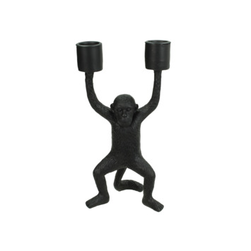 De Kandelaar aap zwart is een excentrieke toevoeging voor in het interieur. Met deze decoratieve kandelaar haal je een eyecatcher in huis. Deze kandelaar past mooi in verschillende interieurstijlen. De kandelaar is 20 x 7,5 x 10,5 cm.
