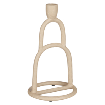 Kandelaar met een bijzonder design van H24,5 x Ø13 cm. Gemaakt van aluminium in een beige kleur. Door het bijzondere design is deze kandelaar bijna een kunstwerk te noemen. Zet er een dinerkaars in en je maakt het ook gelijk extra gezellig in huis! De kaarsenhouder is gemaakt van aluminium en heeft een neutrale, beige kleur. De oneffen afwerking geeft hier een authentieke draai aan. Heb jij er al een mooie plek voor gevonden? De afmetingen zijn H24,5 x Ø13 cm.