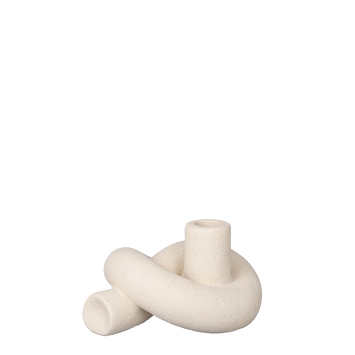 Deze kandelaar is naast functioneel ook erg decoratief. Dankzij z'n unieke vormgeving is hij niet te missen en steelt hij de show. Ook zonder kaars is de kandelaar een prachtig pronkstuk. Goed te gebruiken voor als je extra licht nodig hebt of extra sfeer wilt creëren. De kandelaar is gemaakt van stevig crémekleurig keramiek en heeft een lengte van 15,5 cm, een breedte van 11,5 cm en een hoogte van 9 cm.