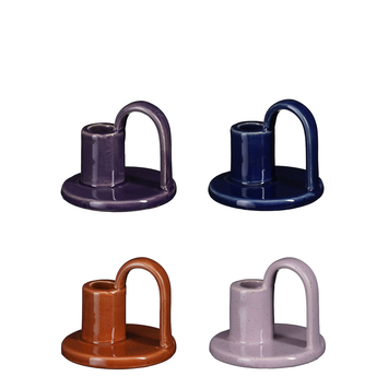 Deze stijlvolle kandelaar met handvat is een echte sfeermaker. De kandelaar is gemaakt van keramiek en voorzien van een mooie glans laag. De set bestaat uit de kleuren paars, donkerblauw, oranje en lila. De kandelaar is voorzien van een handig handvat waarmee je hem eenvoudig kan optillen. De afmetingen zijn 7,5 cm hoog en hij heeft een diameter van 9 cm.