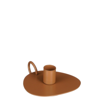 Deze metalen kandelaar in een warme donkerbruine kleur is perfect voor een moderne en sfeervolle inrichting. Het eenvoudige, maar elegante ontwerp met een handige handgreep maakt het gemakkelijk om de kandelaar te verplaatsen en Creëert een gezellige sfeer in elke ruimte. Ideaal voor een romantische avond of als decoratie op tafel. De afmetingen zijn L11 x B12 x H4,5 cm.