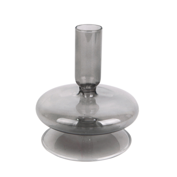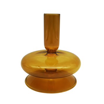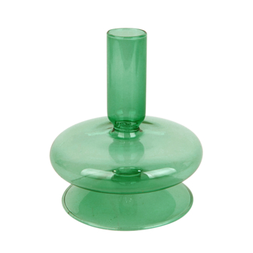 Leuke kandelaar in een ronde vorm gemaakt van glas. Ook verkrijgbaar in verschillende kleuren. Combineer onze verschillende kandelaren en gekleurde kaarsen met elkaar voor een extra leuk effect. De kandelaar is 12,5 cm hoog.