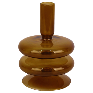 Leuke kandelaar in een ronde vorm gemaakt van glas. Ook verkrijgbaar in verschillende kleuren. Combineer onze verschillende kandelaren en onze gekleurde kaarsen met elkaar voor een extra leuk effect. De kandelaar is 16 cm hoog.