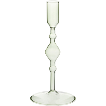 Kandelaar gemaakt van glas in een transparante kleur. Verkrijgbaar in meerdere kleuren. Extra leuk om verschillende kleuren met elkaar te combineren. De kandelaar heeft een hoogte van zo'n 20 cm.