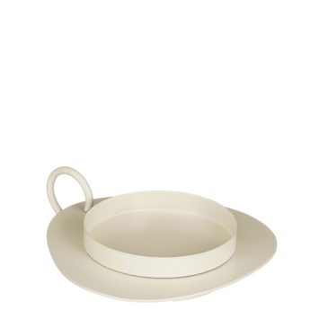 Deze metalen kandelaar in een warme grijze kleur is perfect voor een moderne en sfeervolle inrichting. Het eenvoudige, maar elegante ontwerp met een handige handgreep maakt het gemakkelijk om de kandelaar te verplaatsen en Creëert een gezellige sfeer in elke ruimte. Ideaal voor een romantische avond of als decoratie op tafel. De afmetingen zijn L15 x B13,5 x H3 cm.