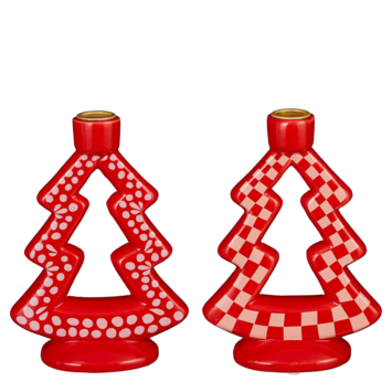 Kandelaar kerstboom rood per stuk - l13xb7xh18,5cm