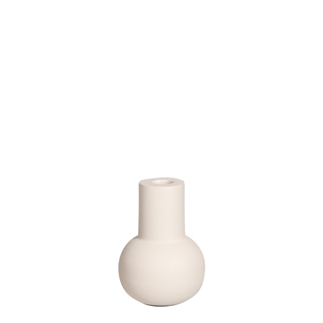 Deze mooie off white, ijzeren kandelaar met ronde vormen past perfect tussen al het servies op de gedekte tafel. Nu alleen nog bijpassende dinerkaarsen in prachtige kleuren. De afmetingen zijn H12 x D10,5 cm