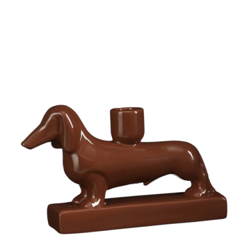 Deze kandelaar van Theo-Bert Pot geeft een speelse draai aan klassiek keramiek. Gemaakt van glanzend terrakleurig keramiek en gevormd als een teckel is dit een verrassend detail dat direct sfeer brengt. Met een lengte van 21 centimeter, een breedte van 4,5 centimeter en een hoogte van 12,5 centimeter staat hij stevig en charmant op elke plek. Mooi op een dressoir, vensterbank of als vrolijke noot op een feestelijk gedekte tafel. Deze kandelaar combineert makkelijk met andere accessoires, maar komt ook solo goed tot zijn recht.