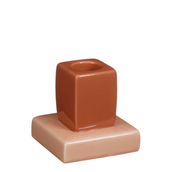 Deze compacte kandelaar van Theo-Bert Pot valt op door zijn bijzondere vorm en zachte kleurgebruik. Het roze keramiek met warme terratint en glanzende afwerking geeft een modern, vriendelijk accent aan je interieur. De gelaagde, geometrische vorm maakt hem tot een subtiel object met karakter. Met een formaat van 7 bij 7 bij 7 centimeter is hij ideaal voor op een bijzettafel, vensterbank of in een open kast. Een sfeervolle toevoeging die net dat beetje extra geeft aan je ruimte.