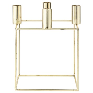 Kandelaar vierkant, goud, 150x150 cm. Kaarsen worden nu de dagen langer worden weer belangrijk in het interieur. Mooie kandelaars helpen om sfeer en stijl te brengen. Dit vierkante design geeft een podium aan de klassieke diner kaars.