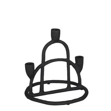Kandelaar met een bijzonder design van H23,5 x Ø23 cm. Gemaakt van aluminium in een zwarte kleur. Door het bijzondere design is deze kandelaar bijna een kunstwerk te noemen. Zet er drie dinerkaarsen in en je maakt het ook gelijk extra gezellig in huis! De kaarsenhouder is gemaakt van aluminium en heeft een moderne, zwarte kleur. De oneffen afwerking geeft hier een authentieke draai aan. Heb jij er al een mooie plek voor gevonden? De afmetingen zijn H23,5 x Ø23 cm.