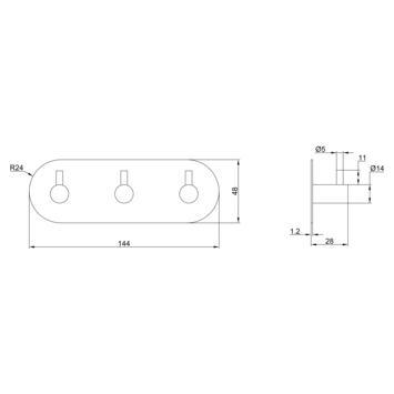 Kapstok 3 haken Milo zwart ijzer 145 mm