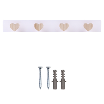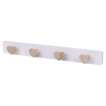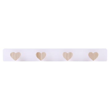 Kinderkapstok Lieve is een speelse MDF kapstok met een viertal haakjes in de vorm van een houten hartje. Door de neutrale kleur past deze schattige kapstok op vele baby -en kinderkamers. Jasjes en tasjes zullen vanaf nu netjes opgehangen worden. De kapstok is 42cm lang en heeft een breedte van 5cm. Kapstok Lieve wordt inclusief bevestigingsmateriaal geleverd.