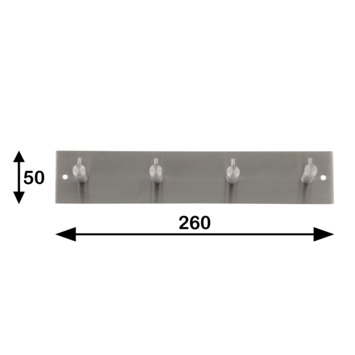 Op zoek naar een RVS-look kapstok? Deze kapstok is van het merk Novidade en heeft 4 haken. De kapstok is gemaakt van metaal en heeft een geborstelde afwerking. Deze kapstok kan gebruikt worden in diverse ruimtes zoals de hal, badkamer en keuken. Deze kapstok heeft een RVS-kleur en wordt geleverd met schroeven en pluggen. De kapstok is makkelijk op te hangen.