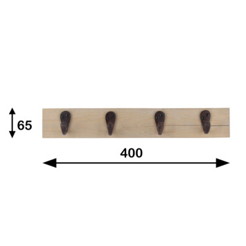 Kapstok 4 haken Tess grijs vuren 400 mm