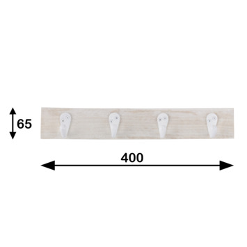 Kapstok 4 haken Tess wit vuren 400 mm