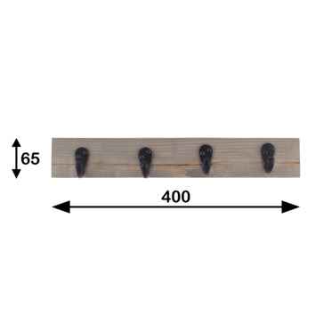 Kapstok 4 haken Tess zwart vuren 400 mm