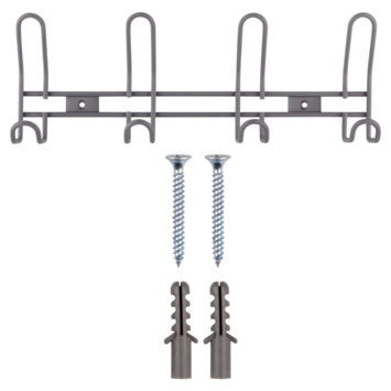 Op zoek naar een nieuwe kapstok? Deze kapstok van het merk novidade heeft 4 haken. De kapstok is gemaakt van metaal met een poedercoating en heeft een grijze kleur. De kapstok kan gebruikt worden in verchillende ruimtes zoals in de keuken, hal of badkamer. De ophanghaak is zeer eenvoudig op te hangen en wordt inclusief schroeven en pluggen geleverd.