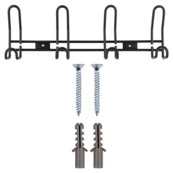 Bij KARWEI zijn veel verschillende garderobe- of kapstokhaken te koop. Zoals de kapstok William 4 haaks zwart. De kapstok is gemaakt van metaal en heeft een afmeting van 375 mm.