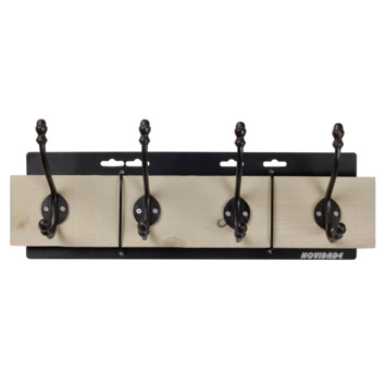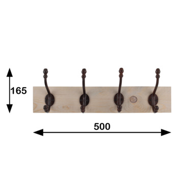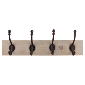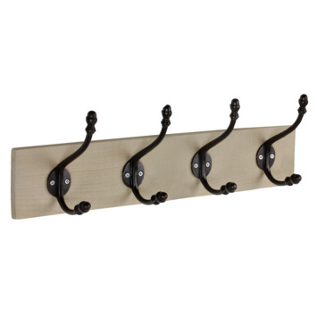 Kapstok 4 haken Zoe grijs vuren 500 mm
