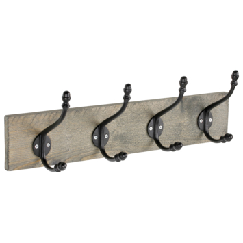 Kapstok 4 haken Zoe zwart vuren 500 mm