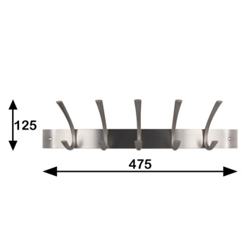 Kapstok 5 haken John RVS look messing 475 mm