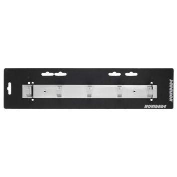 Op zoek naar een nieuwe kapstok?Deze kapstok is van het merk Novidade en heeft 5 haken. De kapstok is gemaakt van metaal en heeft een geanodiseerde afwerking. Deze kapstok kan gebruikt worden in diverse ruimtes zoals de hal, badkamer en keuken. Deze kapstok heeft een aluminium kleur en wordt geleverd inclusief schroeven en pluggen. De kapstok is makkelijk op te hangen.
