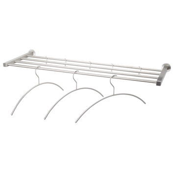 Mijn zus en ik hebben beiden deze kapstok, kwaliteit is dusdanig slecht dat als er maar iets aan hangt dan gaat de kapstok gelijk scheef hangen, de bevestiging van de stangen aan de voorzijde tov de muurbevestiging is zo gammel dat zodra er maar een paar jassen aan hangen het hele ding doorbuigt.