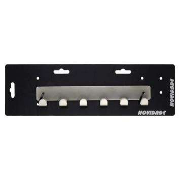Op zoek naar een nieuwe kapstok? Deze kapstok van Novidade heeft 6 haken. De kapstok is gemaakt van metaal en is afgewerkt met nikkel. Je kunt de kapstok onder andere gebruiken in de hal, badkamer of keuken. De RVS kapstok wordt geleverd met schroeven en pluggen. De kapstok kan eenvoudig bevestigd worden.