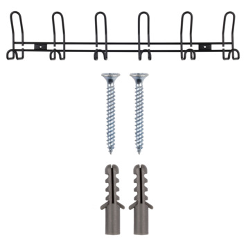 Bij KARWEI zijn veel verschillende garderobe- of kapstokhaken te koop. Zoals de kapstok William 6 haaks zwart. De kapstok is gemaakt van metaal en heeft een afmeting van 603 mm.