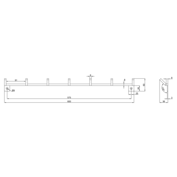 Kapstok 7 haken Jack zwart ijzer 600 mm