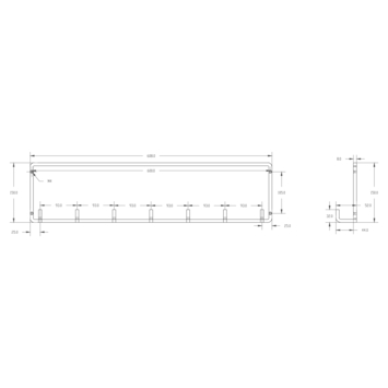 Kapstok 7 haken Mila zwart ijzer 600 mm
