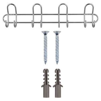 Bij KARWEI zijn veel verschillende garderobe- of kapstokhaken te koop. Zoals de kapstok Gerome 8 haaks chroom glans. De kapstok is gemaakt van metaal en heeft een afmeting van 590 mm.