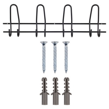 Op zoek naar een zwarte kapstok? Deze kapstok is van het merk Novidade en heeft 8 haken. De kapstok is gemaakt van metaal met een poedercoating. Deze kapstok kan gebruikt worden in diverse ruimtes zoals de hal, badkamer en keuken. De zwarte kapstok wordt geleverd met schroeven en is makkelijk te bevestigen.
