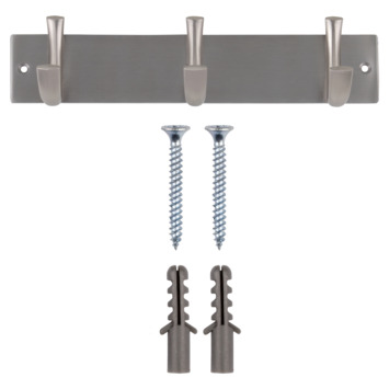 Bij KARWEI zijn veel verschillende garderobe- of kapstokhaken te koop. Zoals de kapstok John 3 haaks mat nikkel. De kapstok is gemaakt van mat nikkel voor een RVS look en heeft een afmeting van 260 mm.
