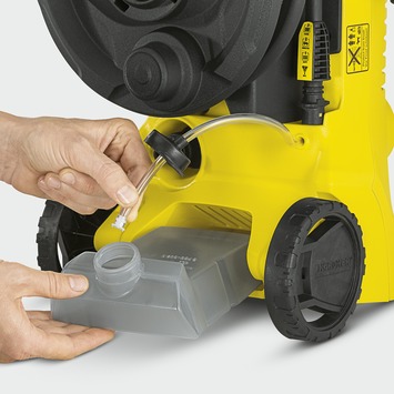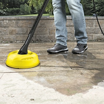 De machine wordt geleverd met de extra Home Kit inclusief de terrasreiniger T-150 en 500 ml Patio & Deck reinigingsmiddel, waarmee u grotere oppervlakken spatvrij schoon maakt.