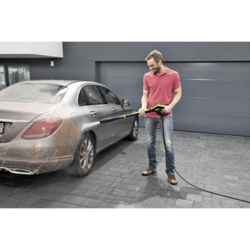 Met het Plug ‘n’ Clean systeem verwissel en bevestig je gemakkelijk je reinigingsmiddelen. Voor een betere stabiliteit heeft de hogedrukreiniger een laag zwaartepunt. De hogedrukreiniger heeft een meegeleverde vuilfrees die bestrating en meubilair gemakkelijk schoon kan maken. En de spuitlans kan worden gebruikt voor het schoon maken van fietsen, egale oppervlakken en trappen. De lans kan de waterdruk aanpassen waardoor je altijd met de ideale controle de klus kan klaren. Met de 8 meter lange hogedrukslang en de 5 meter lange snoerlengte ben je 13 meter bereikbaar. Dankzij de telescopische handgreep is de machine gemakkelijk op te bergen en te verplaatsen.