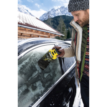 De elektrische ijskrabber EDI 4 maakt eindelijk komaf met de lastige taak om het ijs bij beetje weg te krabben. Met behulp van de roterende schijf met zes stevige plastic bladen verwijdert de ijskrabber in één keer moeiteloos zelfs hardnekkig ijs van autoruiten. Als de EDI 4 in de stand-bymodus staat, is een lichte druk van boven voldoende om de schuurschijf te laten roteren - en het ijs zal praktisch vanzelf verdwijnen. Als de bladen versleten zijn, kan de schuurschijf volledig worden vervangen zonder gereedschap (schuurschijf verkrijgbaar als reserveonderdeel). Het moderne en compacte ontwerp van de ijskrabber en zijn beschermkap zorgen voor een gemakkelijke en veilige bediening en opberging. Eén acculading is voldoende voor verschillende toepassingen. De geïntegreerde LED knippert wanneer het apparaat moet worden opgeladen.