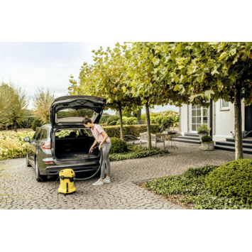 De multifunctionele alleszuiger WD 3 V-17/4/20 is erg krachtig met een stroomverbruik van slechts 1000 watt. De robuuste en slagvaste kunststof container heeft een inhoud van 17 liter. Het patroonfilter maakt gemakkelijk stofzuigen van nat en droog vuil mogelijk, zonder filtervervanging. De 2 meter lange zuigslang en - niet te vergeten - de nat- en droog vloerzuigmond dragen bij aan een optimale vuilopname en zorgen voor perfecte resultaten.