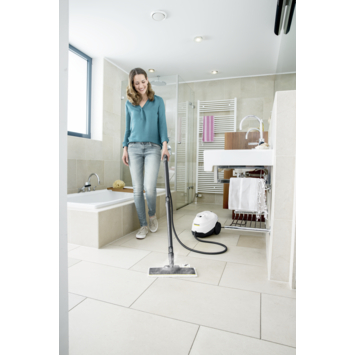 Met de Kärcher stoomreiniger SC3 kun je continue reinigen, omdat de 1 liter tank tijdens het schoonmaakwerk mag worden nagevuld. Daarnaast kun je kunt zo aan de slag, want de stoomreiniger heeft maar 30 seconden nodig om op stoom te komen. Chemische schoonmaakmiddelen zijn niet meer nodig met dit krachtige apparaat, want 99,9% van de bacteriën worden gedood door middel van stoom. De SC3 is ideaal voor het reinigen van alle harde oppervlakken, het opfrissen van kleding en zelfs voor het ontdooien en schoonmaken van de vriezer. En dit is nog niet alles: de stoomreiniger SC3 kan ook gebruikt worden om kalkaanslag te verwijderen en je oven te reinigen. Tot slot: de stoomreiniger heeft een hoge stoomdruk van 3.5 bar die je eenvoudig in 2 standen kunt regelen. De Kärcher stoomreiniger SC3 is wekelijk een ideaal product voor elk huishouden!