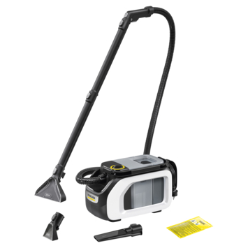 - Compleet geleverd: De set bevat de Kärcher SE 3 Compact, meubelstofzuigmond, kierenzuigmond en 100 ml reinigingsmiddel RM 519.