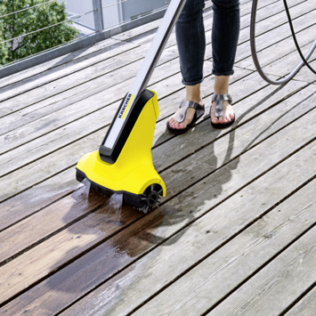 De Kärcher terrasreiniger PCL 4 verwijderd hardnekkig vuil snel en grondig. Hierdoor is de machine uitermate geschikt voor houten oppervlakten die je niet met een hogedruk reiniger schoon kan maken. De twee roterende walsborstels zorgen ervoor dat al het vuil los komt en ook direct afgevoerd wordt.