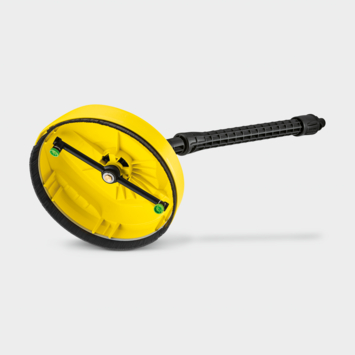 De Karcher T-Racer T2 terrasreiniger zet je op je Karcher K2 of K3 hogedrukreiniger om snel uw terras te reiniger. Met de T-racer T 2 wordt de groene aansslag of hardnekkig vuil verwijdert. De ronde kap beschermt je broekspijpen tegen opspattend water. Met de T-Racer T2 staat je terras of balkon er snel weer netjes bij.