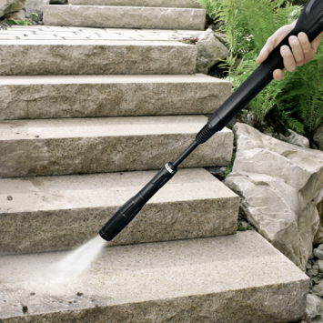 De Kärcher vario power spuitlans VP145: van lagedrukstraal met reinigingsmiddel tot hogedrukstraal met traploos verstelbare drukregeling door eenvoudig aan de spuitlans te draaien. Ideaal voor het reinigen van kleinere oppervlakken rondom huis en tuin, zoals muren, paden schuttingen en voertuigen. Geschikt voor alle Kärcher-hogedrukreinigers van de klasse K4 en K5.