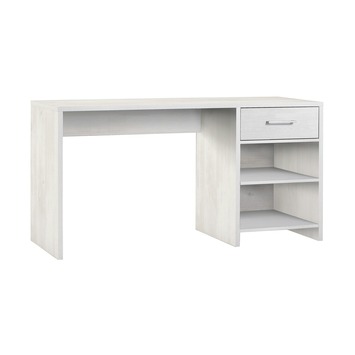 Bureau Karlijn is een compact en functioneel bureau met aan de rechterzijde 1 lade en 2 open vakken. De lade heeft solide metalen ladegeleiders en een moderne metalen greep. De deuren en lade hebben een steigerhoutlook krasvaste toplaag. Doordat dit bureau aan de achterzijde in kleur is afgewerkt, kan deze ook vrijstaand geplaatst worden. Bureau Karlijn is ook verkrijgbaar in wit met houtnerfstructuur. Het unieke van dit bureau is dat er ook een bijpassende kast en ladekast geleverd kan worden.