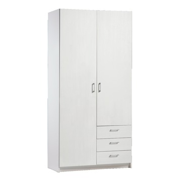 De KARWEI kast Karlijn 2-deurs wit houtnerf met zichtbare houtnerf is een veelzijdige kast met draaideuren. Door de 3 laden heeft de kast veel praktische opbergruimte. Daarnaast is de kast zowel een legkast als hangkast. Het leggedeelte heeft 3 legplanken en het hanggedeelte heeft 1 legplank en een roede. De deuren en laden hebben moderne metalen grepen en de laden zijn uitgevoerd met solide metalen ladegeleiders. De kast is verkrijgbaar in een 2-deurs en een 3-deurs uitvoering. De deuren en laden hebben een witte toplaag met houtnerfstructuur. De kastombouw van deze kast is wit.