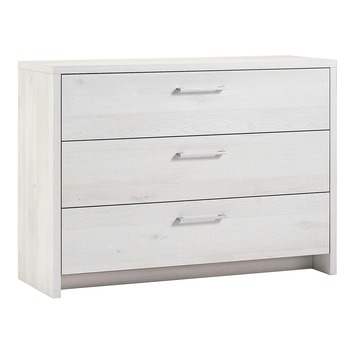 Ladekast Karlijn heeft 3 laden die voorzien zijn van solide metalen ladegeleiders en een moderne metalen greep. De laden hebben een steigerhoutlook krasvaste toplaag. De ladekast is ook verkrijgbaar met 2 laden of 6 laden en in de kleuren wit met houtnerfstructuur en eikendecor. Ladekast Karlijn is perfect te combineren met een bijpassende kast en bureau.