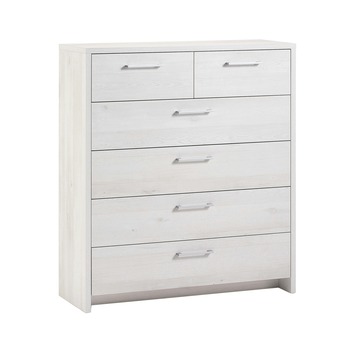 Ladekast Karlijn heeft 6 laden die voorzien zijn van solide metalen ladegeleiders en een moderne metalen greep. De laden hebben een steigerhoutlook krasvaste toplaag. De ladekast is ook verkrijgbaar met 2 laden of 3 laden en in de kleuren wit met houtnerfstructuur en eikendecor. Ladekast Karlijn is perfect te combineren met een bijpassende kast en bureau.
